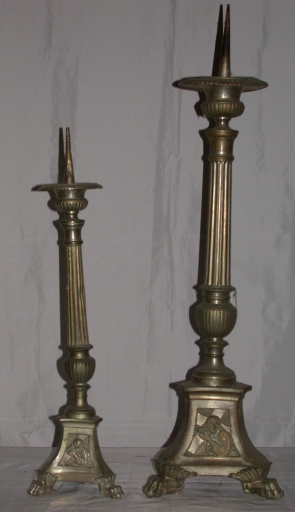 Garniture d'autel 4 : croix et série de 10 chandeliers,