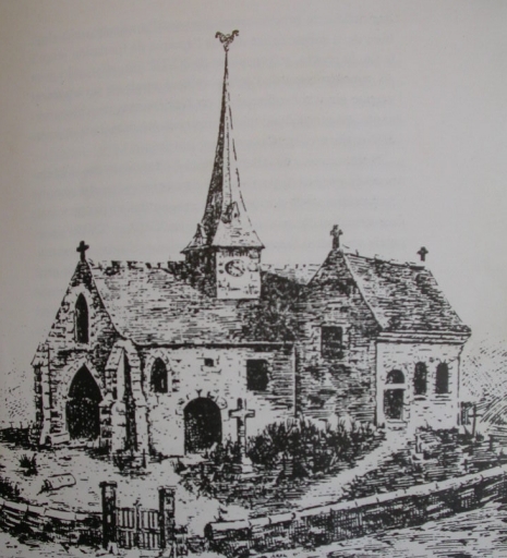 Représentation de l'ancienne église. Bibliothèque municipale de Plerguer
