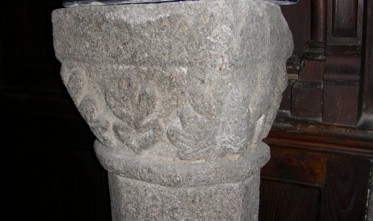Vue rapprochée : chapiteau à représentation végétaleImmatriculation