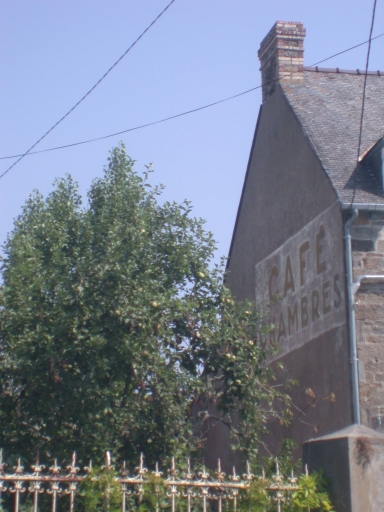 Pignon avec inscription peinte : café, chambresImmatriculation