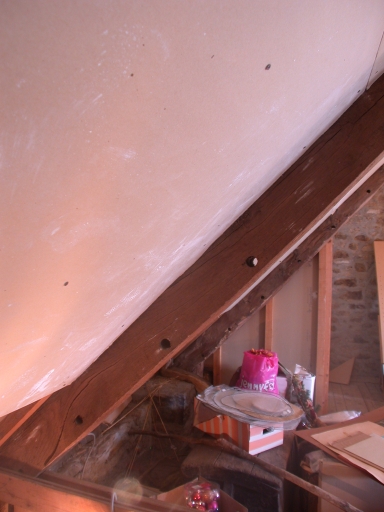 Charpente, détail, ferme avec trous pour l'attache des gerbes de chaumeImmatriculation