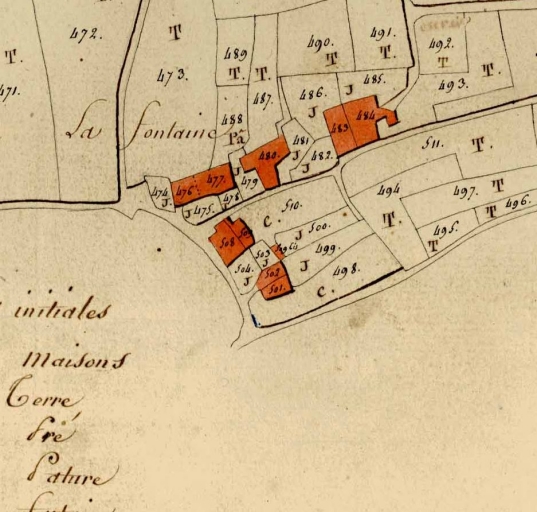 Extrait du plan masse du cadastre de 1809Immatriculation