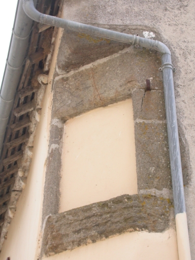 Façade nord : détail de la baie du pan coupé et des corbelets sculptés du 17e siècleImmatriculation