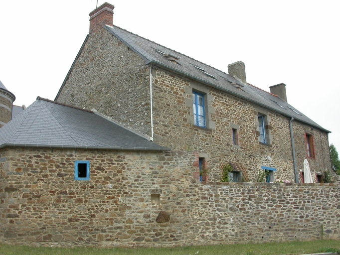 Vue générale de l'élévation sud de la remise, du mur-pignon ouest et de la façade sud de la maisonImmatriculation
