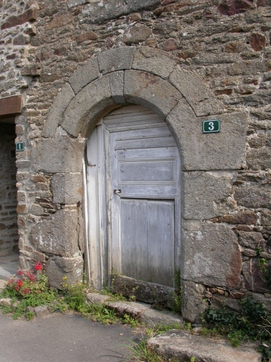 Façade sud : détail de la porte à arc en plein cintre chanfreinéImmatriculation