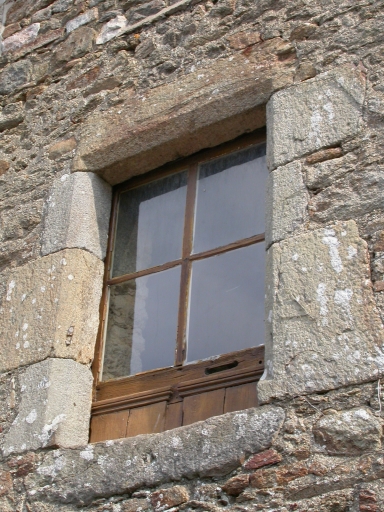 Façade sud : détail d'une baie chanfreinée de l'étageImmatriculation