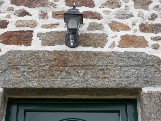 Elévation sud : détail de l'inscription gravée sur le linteau de la porteImmatriculation