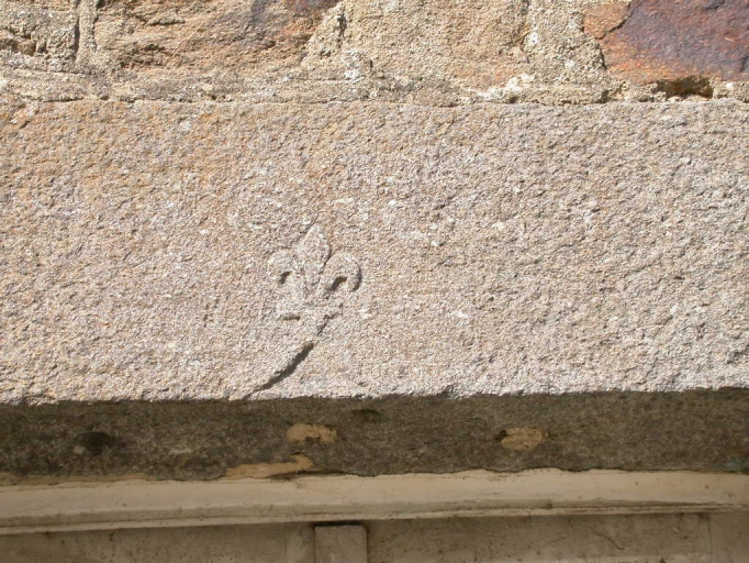 Elévation sud du cellier : détail de la fleur de lys du linteau de la fenêtreImmatriculation