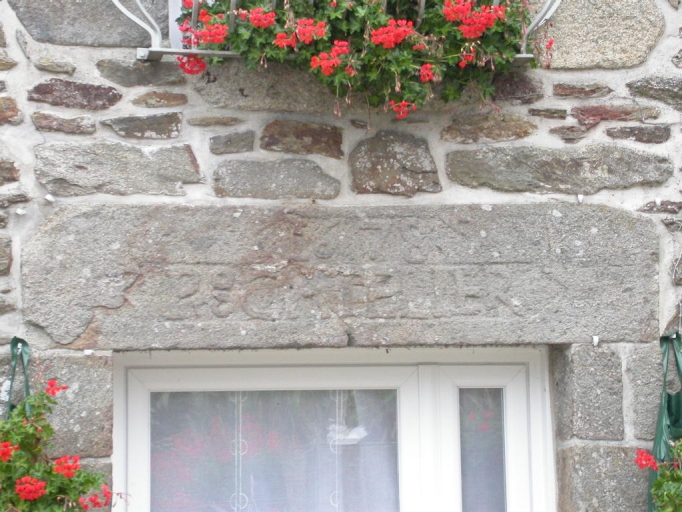 Elévation sud : détail de l'inscription gravée sur le linteau de la porteImmatriculation