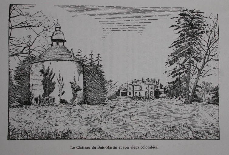 Dessin de Gustave Bénic : élévation sud de la demeure et colombier actuellement détruitImmatriculation