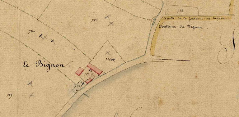 Partie sud-ouest de l'écart sur le cadastre de 1848Immatriculation