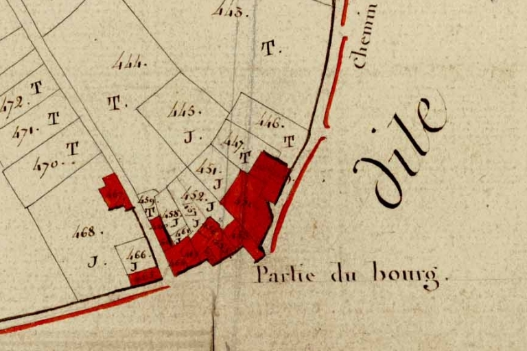 Partie nord-ouest du bourg sur le cadastre de 1809Immatriculation