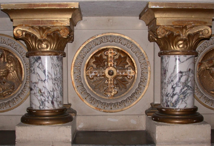 Ensemble du maître-autel : autel, tabernacle, 2 gradins d'autel, degrés d'autel,