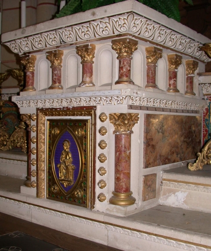 Ensemble du maître-autel : autel, tabernacle, 2 gradins d'autel, degrés d'autel,