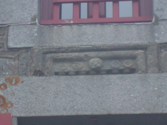 Détail, remploi d'une pierre sculptéeImmatriculation