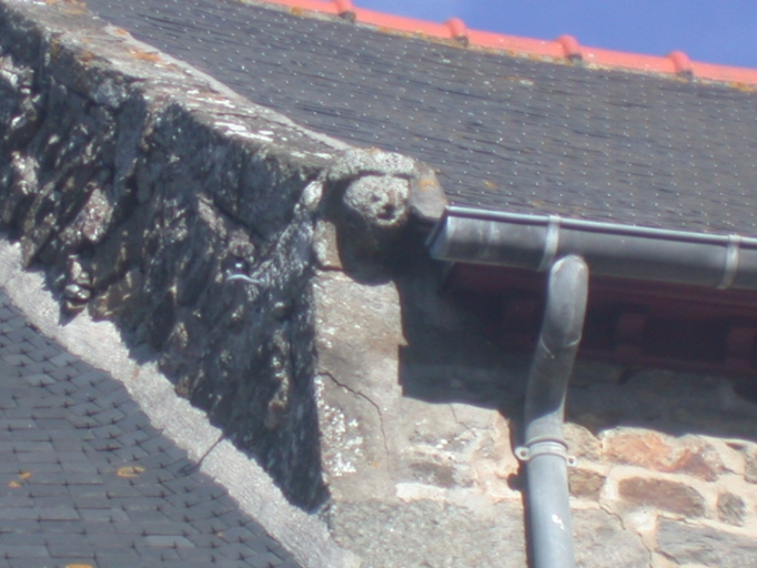 Pignon découvert, détail d'une crossette sculptée.Immatriculation