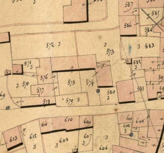 Extrait du cadastre de 1848, parcelles 573, 574Immatriculation