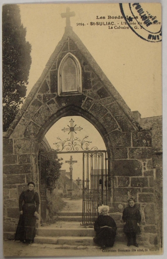 Enclos du cimetière, portail nord avec grille. (Carte postale ancienne, A.D.35 : 6Fi 12)Immatriculation