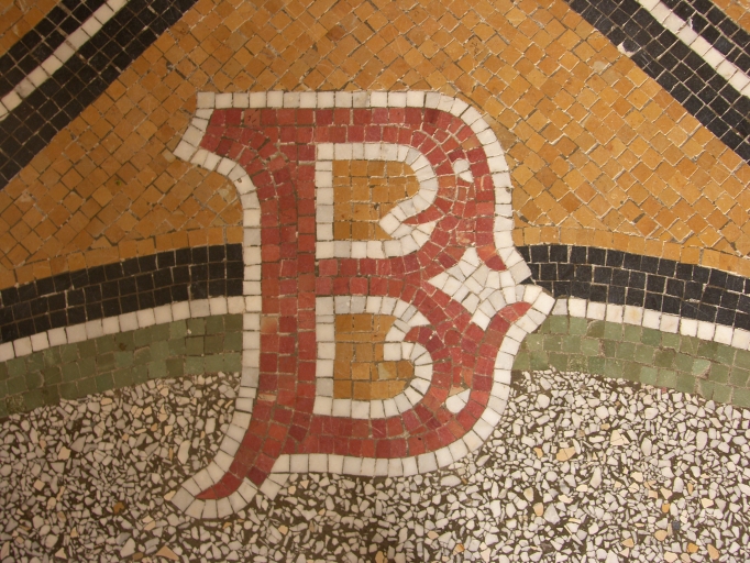 Tapis de sol détail, écoinçon, initiale B de Marie-Augustine BarréImmatriculation