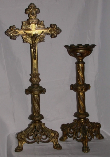 Garniture d'autel 3 : croix et 6 chandeliers,