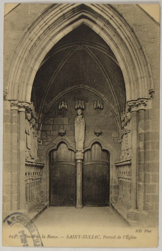694 Bords de la Rance - SAINT SULIAC, Portail de l'Eglise. Carte postale, Paris : Neurdein Frères, édit., limite 19e-20e siècles.