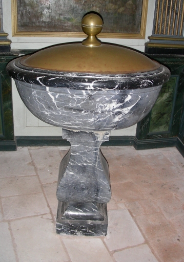 Fonts baptismaux, baldaquin des fonts baptismaux, clôture des fonts baptismaux (Lécousse),
