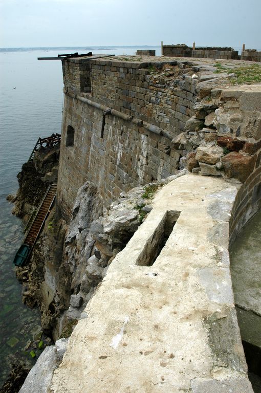 Vue du fort de la Conchée : parapet de la plate-forme d'artillerie (batterie haute). Au premier plan : évent d'aération d'une des casematesImmatriculation
