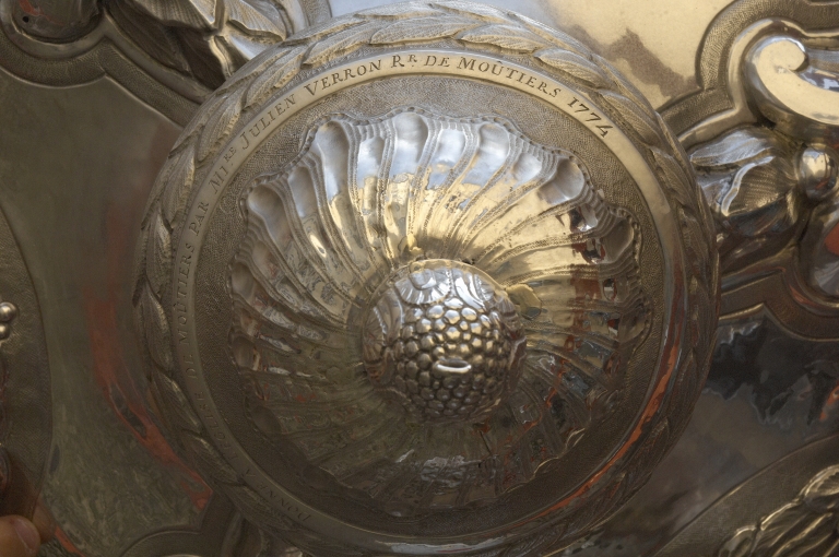 Lampe de sanctuaire : vue de l'inscription à la base du vaseImmatriculation