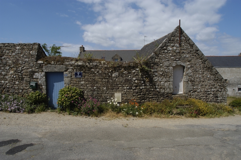 Ferme repérée n°7 (AB 93, 490-491), vue générale sud sur le mur d'enclos et dépendances.Immatriculation