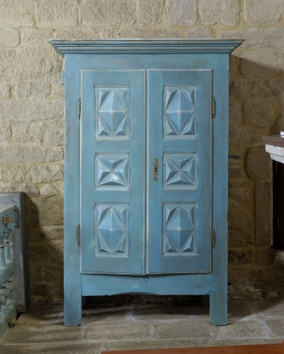 Armoire, bâti ancien (limite 17e siècle 18e siècle) restauré au 20e siècle avec ajout de motifs en pointe de diamant, vue généraleImmatriculation