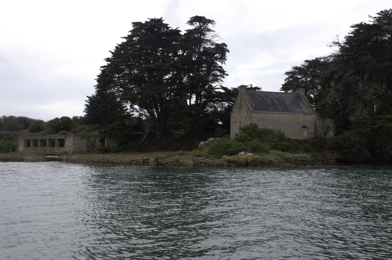 Île de Niheu, maison et chantier d'ostréiculteur (B 4), vus depuis la rivière à l'ouest.Immatriculation