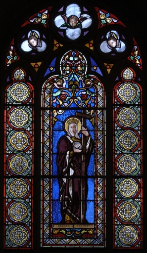 Ensemble de 9 verrières figurées : Sainte Hélène ; Saint Yves ; Immaculée conception ; Sacré-Coeur ; Saint Jean-Baptiste ; Notre-Dame de la Salette ; Saint Mathurin ; Saint Pierre ; Saint Joseph,