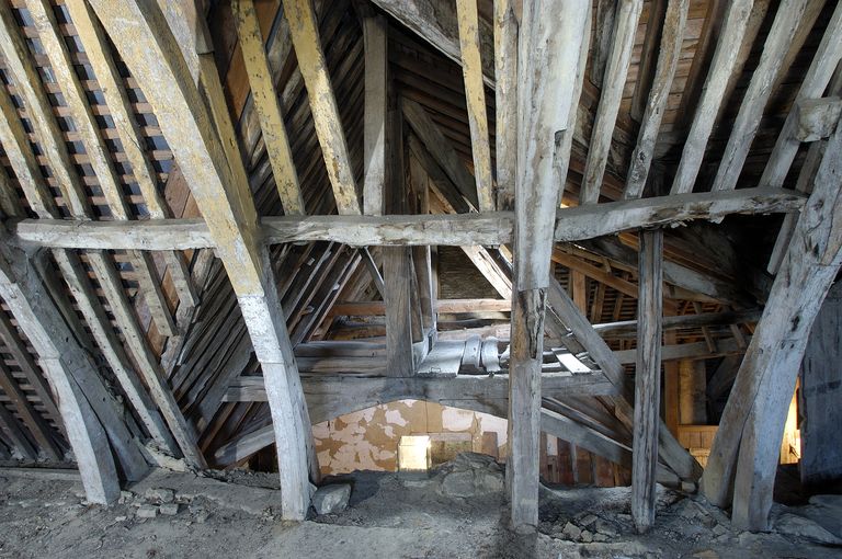 Charpente à chevron portant ferme de l'aile est, vue prise du comble du pavillon nord.Immatriculation
