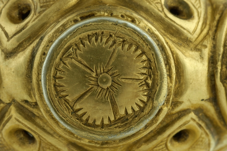 Calice : détail d'un bouton gravé sur le noeudImmatriculation