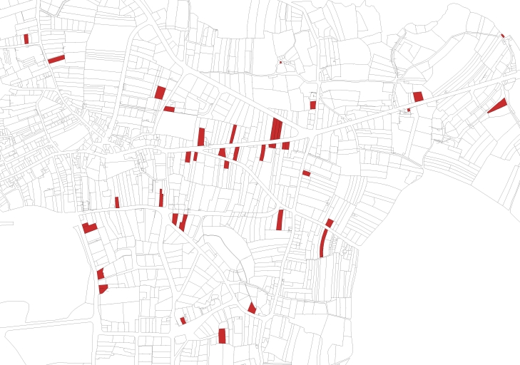 Localisation des maisons des années 1930 repérées.Immatriculation