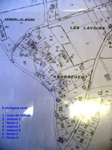 Kerbrégent nord. Plan de localisation des oeuvres étudiées et repérées. Plan cadastral 1987, section XDImmatriculation