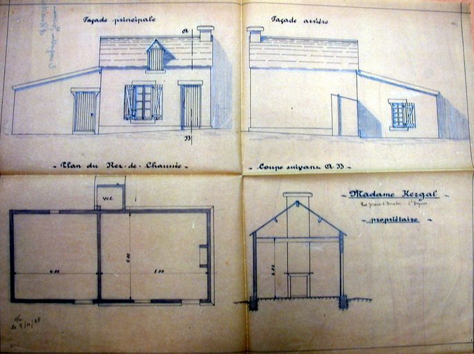 Plan de la maison Kergal, 8 novembre 1928. AM Vannes 5I162.Immatriculation