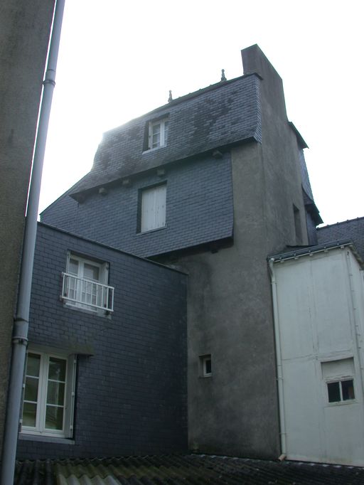 Partie supérieure de la tour d'escalier au nord, du corps de passage s'y rattachant et du corps postérieur secondaire à pan de bois.Immatriculation