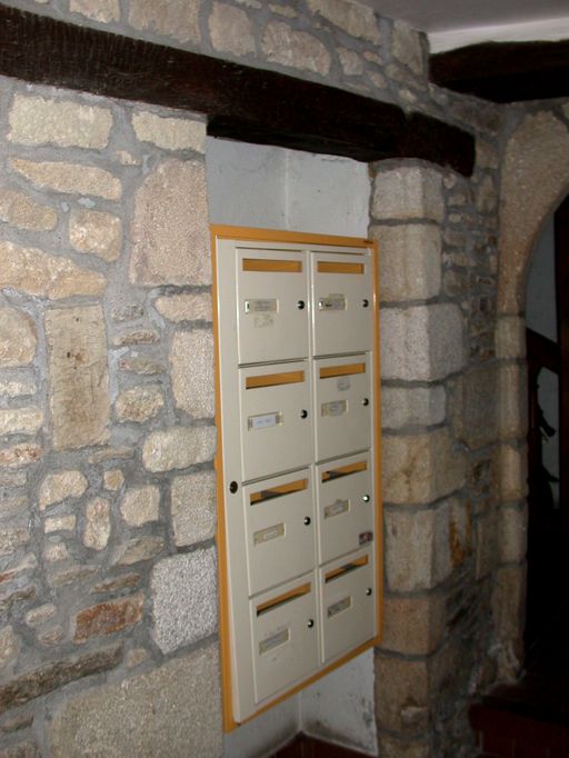 Corps principal sur rue, couloir d'accès à l'escalier, porte nord du 17e siècle communiquant avec le cellier (?).Immatriculation