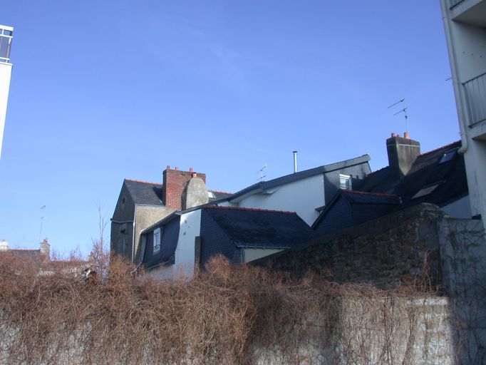 Vue partielle des façades postérieures des n°10, 12, 14 de la rue Tréhiou.Immatriculation