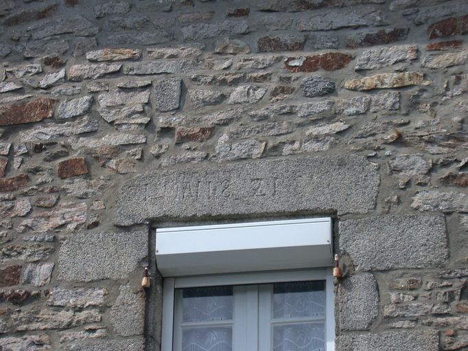 Vue de la date portée sur le linteau de la fenêtre.Immatriculation