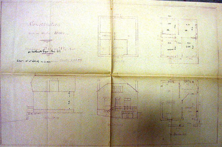 Plan au sol, du sous-sol et de l'étage et élévations, par l'entrepreneur d'Esclavelles, s. d. AM Vannes 5I 162.Immatriculation