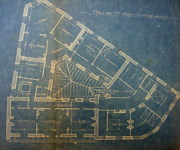Projet de construction du magasin André décembre 1920 : plan du 2e étage. AM Vannes 2D2 Dossiers des séances du conseil municipal.Immatriculation