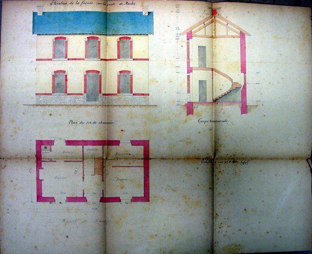 Elévation de la façade sur rue du pavillon d'octroi route de Nantes par E. de Lamarzelle, 1879. AM Vannes 1M197 bureaux d'octroi.Immatriculation