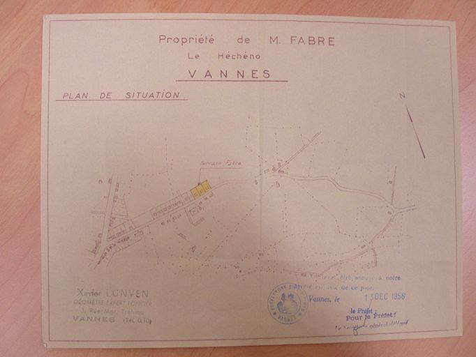 Plan de situation du lotissement Fabre, 1956. AM Vannes 1O221.Immatriculation