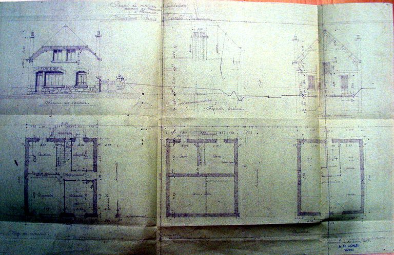 Projet de construction d'une épicerie à Vannes pour Louis Nouail sur des plans de Le Gohlès le 30 mars 1939 (aujourd'hui parcelle 95 n°159). AM Vannes 5I162.Immatriculation