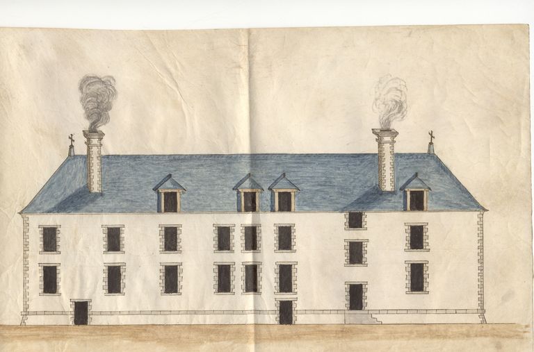 Elévation de la façade sud du couvent des capucins, 1er quart 17e siècle. AM Vannes série Z fonds Martin-Chauffier.Immatriculation