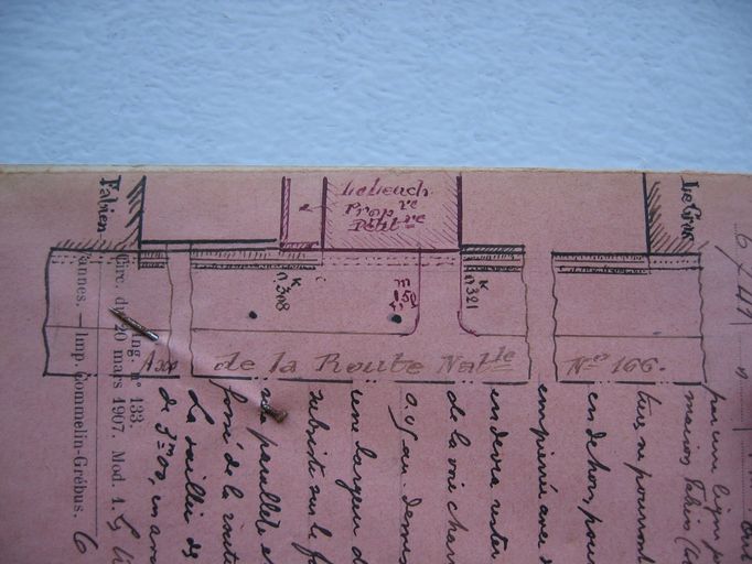 Demande d'alignement pour la construction d'une maison pour M. Le Leuch, 16 février 1910. AD Morbihan S 257.Immatriculation