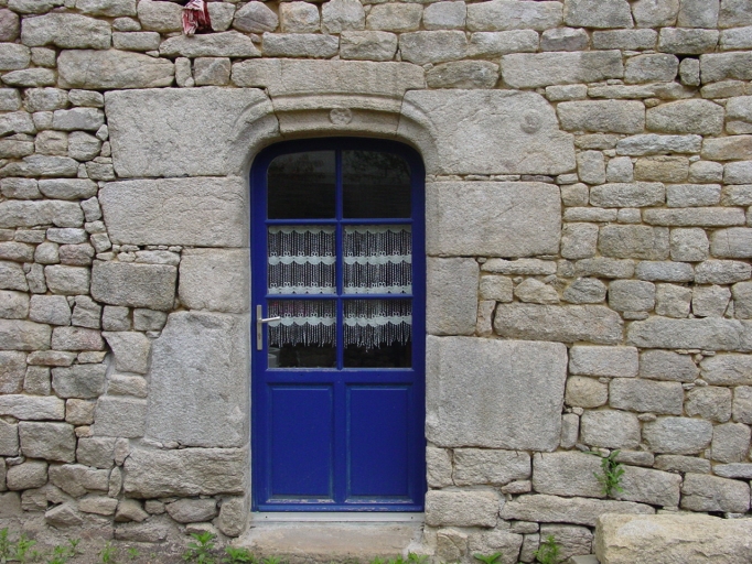 Kerclément, porte du début du 17e siècle ornée d'une rose et d'un globe (à droite) sur la façade d'une ferme non repérée (D 1216).Immatriculation