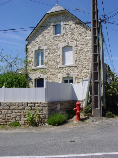 Maison reconstruite dans l'entre-deux-guerres, avec façade en pignon désenduite. Maison repérée (E 1721).Immatriculation
